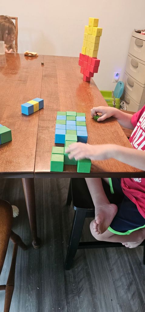 He starts putting the blocks together into patterns that I never would have considered at his age, nor now. I watch #RUDYTOK attempt to mimic her big brothers commitment to the game. He builds remarkable things with these square, lifeless plastic cubes with magnets in them. I am always amazed at what he comes up with. Yes-he is 5 and I am proud of him and his abilities. His uncanny ability to take joy for hours from a box of blocks bought off a social media platform for 20 bucks.
